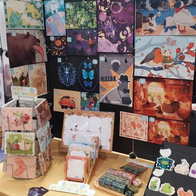 Ich habe jede Menge Sticker, Schlüsselanhänger, Magnete, Prints, Originale, Totebags, Buttons und anderes Tolles dabei.